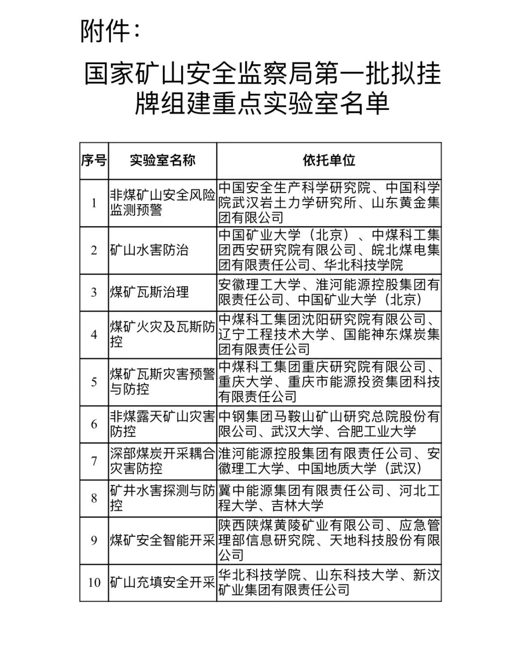 国家矿山安全监察局拟挂牌组建煤矿重点实验室