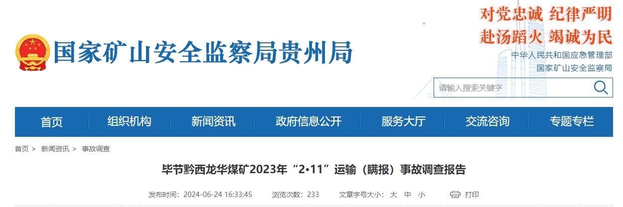 近日,国家矿山安全监察局贵州局公布了《毕节黔西龙华煤矿2023年“2·11”运输(瞒报)事故调查报告》。