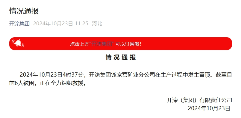 情况通报!一煤矿突发冒顶事故,6人被困!