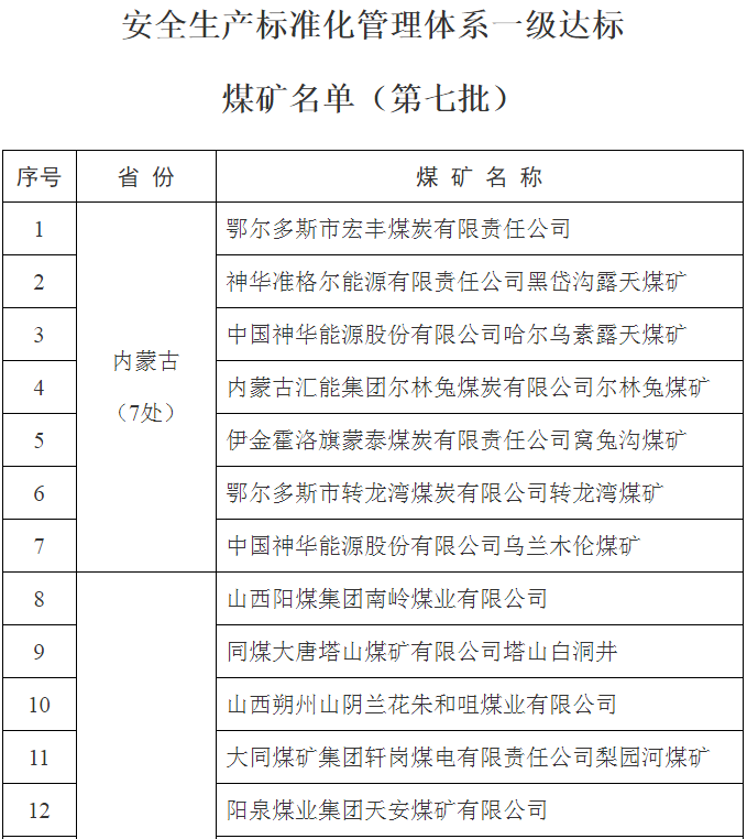 附件:安全生产标准化管理体系一级达标煤矿名单(第七批)