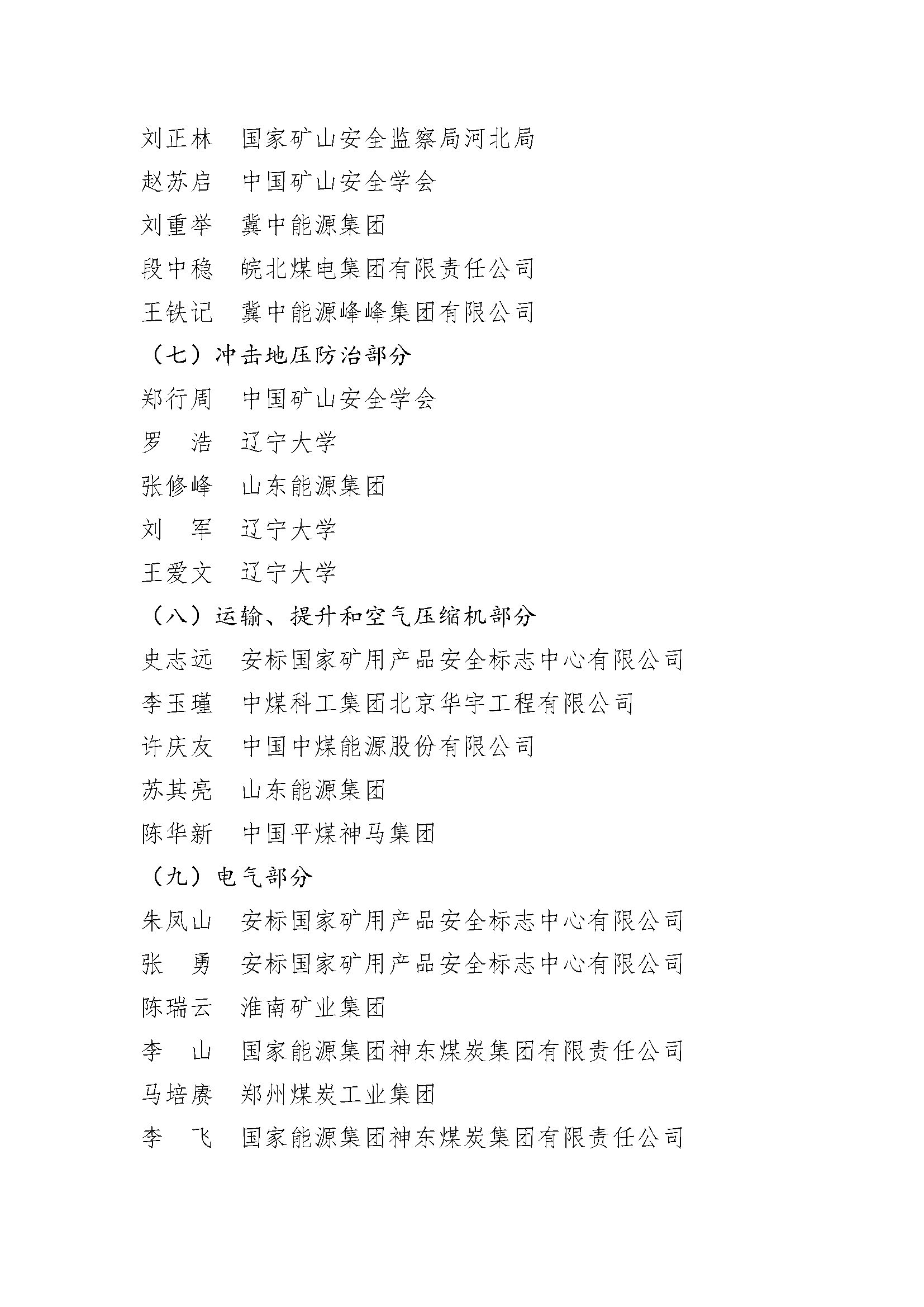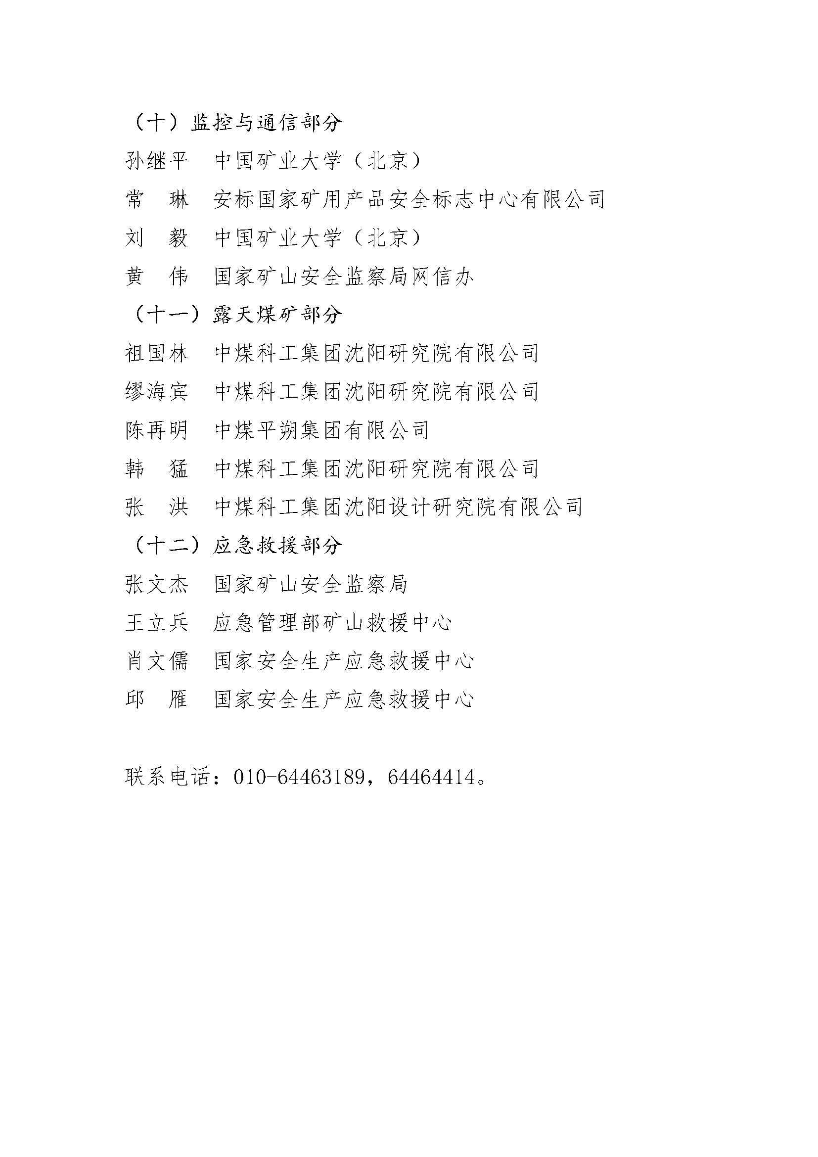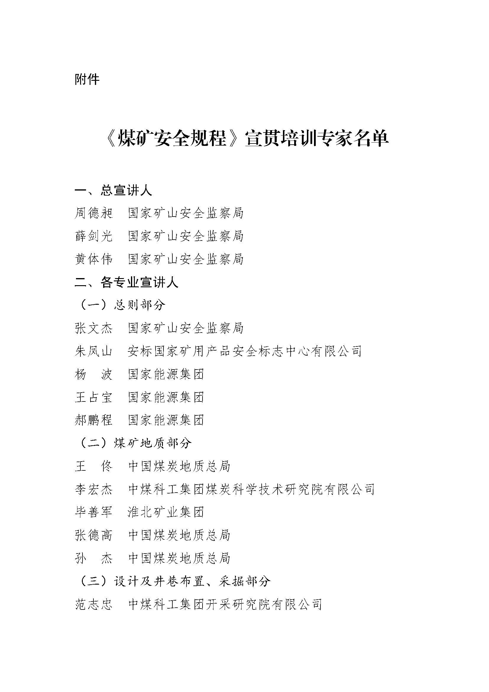 国家矿山安全监察局公布 《煤矿安全规程》宣贯培训专家名单