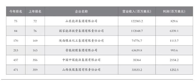 8月5日,财富中文网发布最新的《财富》世界500强排行榜,6家煤炭企业上榜。